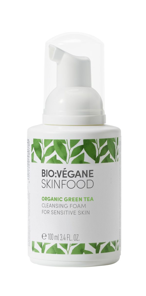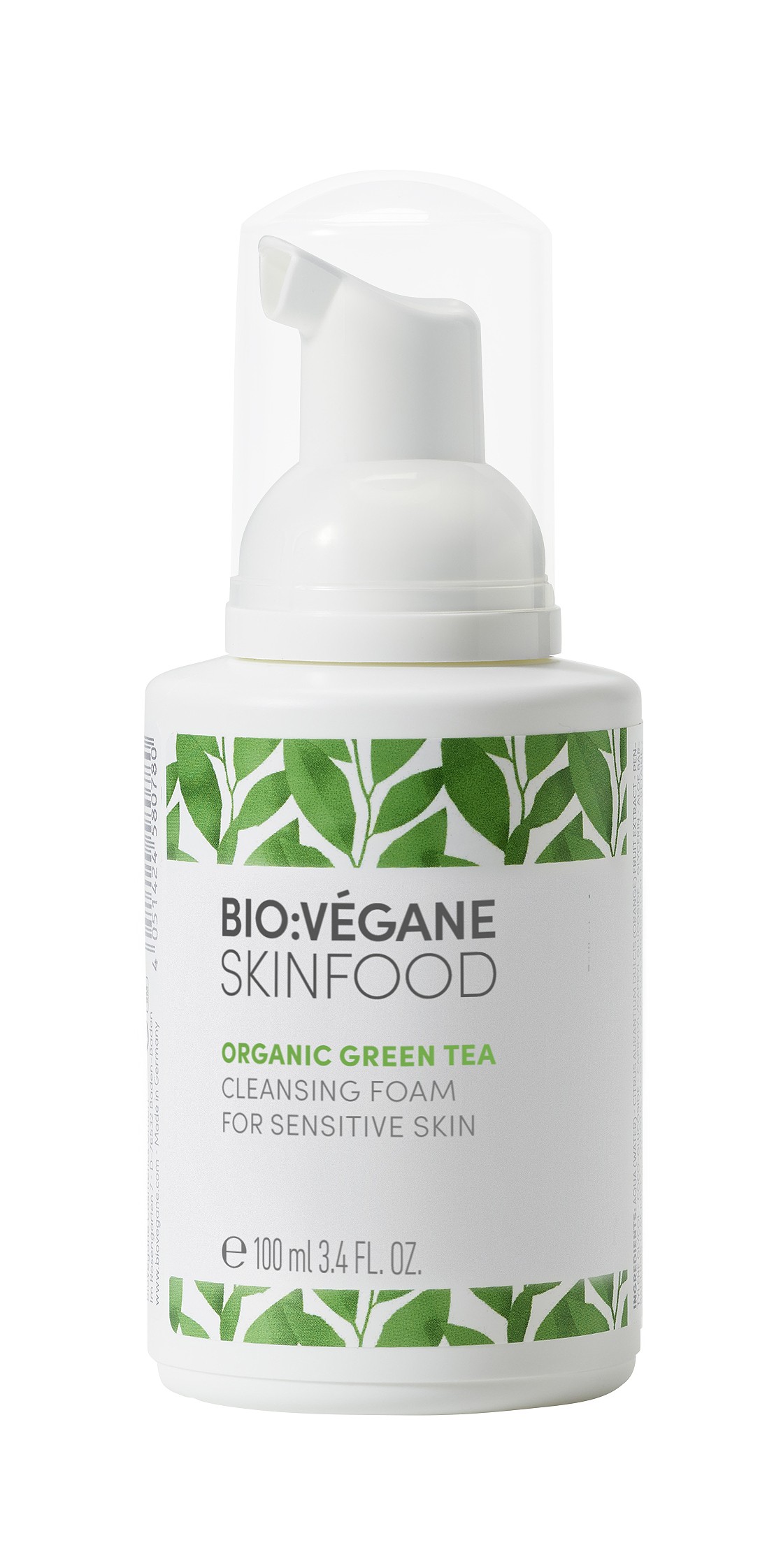 Изключително нежната BIO:VÉGANE БИО ЗЕЛЕН ЧАЙ измиваща пяна съдържа активна композиция от екстракт от суперхраната –био зелен чай, екстракт от корена на био женско биле и екстракт от листата на био гинко. Отстранява нежно грима и замърсяванията, като почиства щадящо кожата и порите в дълбочина, без да я изсушава. Създава приятна свежа чистота и минимизира зачервяванията. Кожата е оптимално подготвена за последваща грижа.