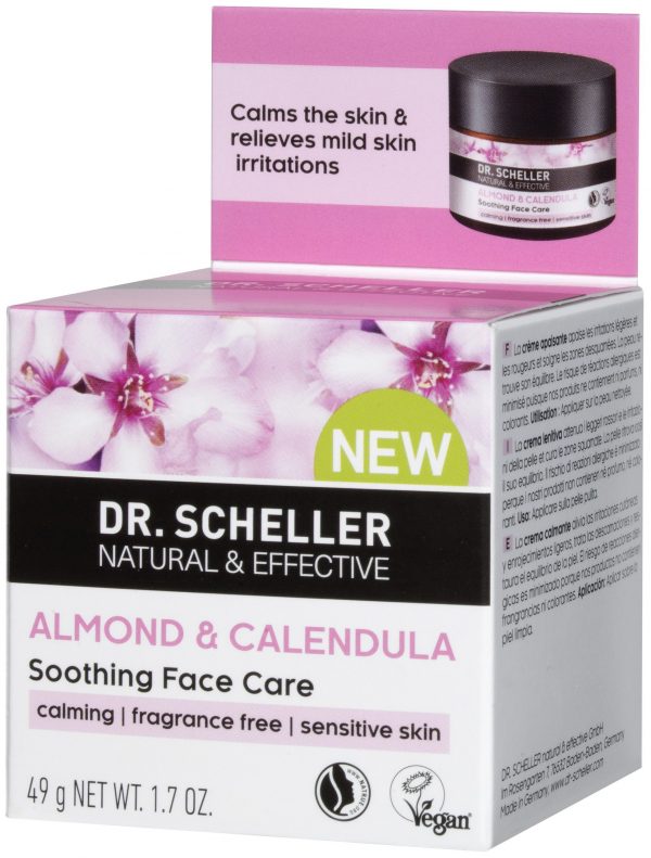 Успокояващиятият крем с био масло от бадем, екстракт от невен и екстракт от алое вера намалява леките възпаления и зачервявания, подхранват и изглаждат лющещата се кожа, хидратират интензивно. Маслото от био соя заздравява и възстановява естествения защитен слой на кожата. Защитава кожата от вредните външни влияния и я предпазва от загуба на влага.