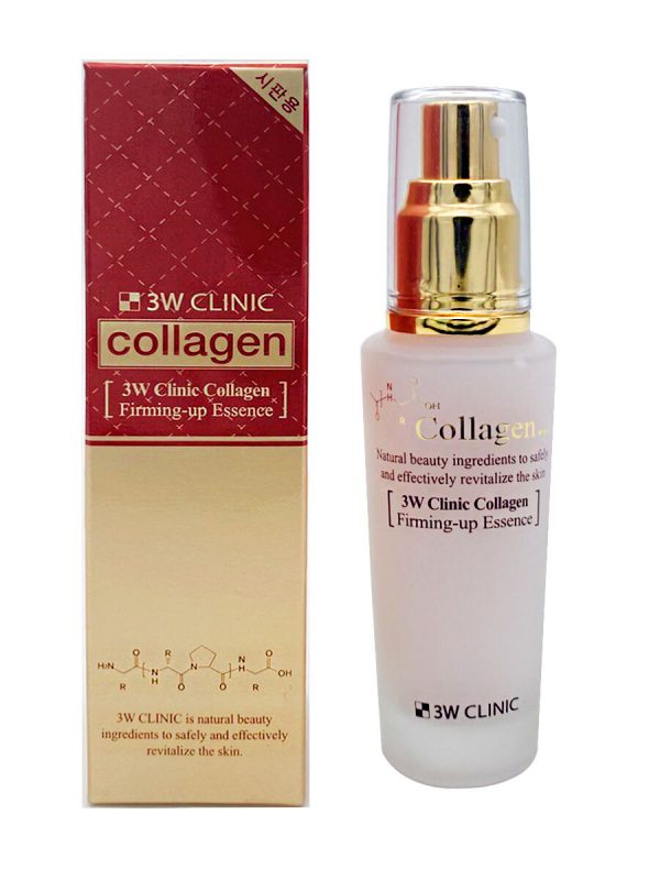Стягаща есенция с колаген, 3W CLINIC Collagen Firming Up Essence – 50ml. Този концентриран колагенов серум помага за укрепване на кожата, като се бори с първите признаци на стареене, благодарение на съдържащият се в него морски колаген.