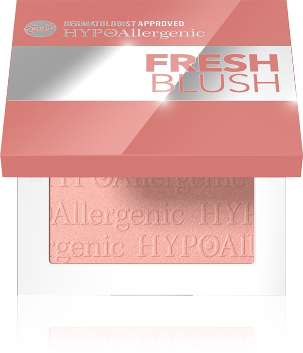 Осигурете си изкусителен естествен свеж тен. Hypoallergenic Fresh руж има изсветляващ ефект и нежно подчертава скулите като им придава нежен блясък. Уникалната оптично изглаждаща формула, прикрива сухите зони и има дълготраен ефект. Предлага се в 2 нюанса – златна праскова и ледена роза, комбинацията им е идеална за драпинг.